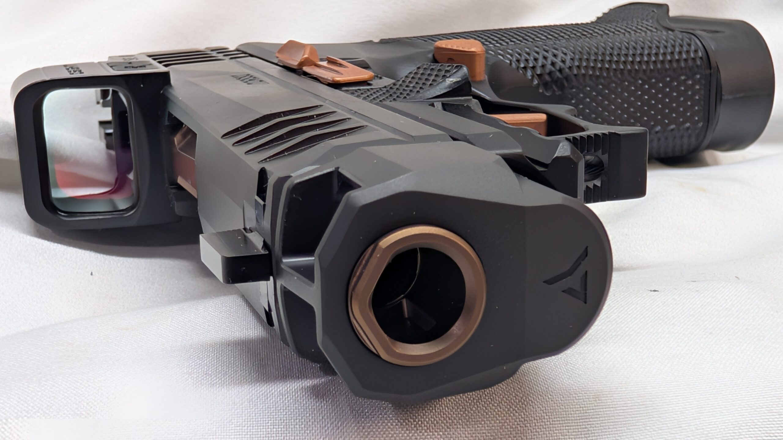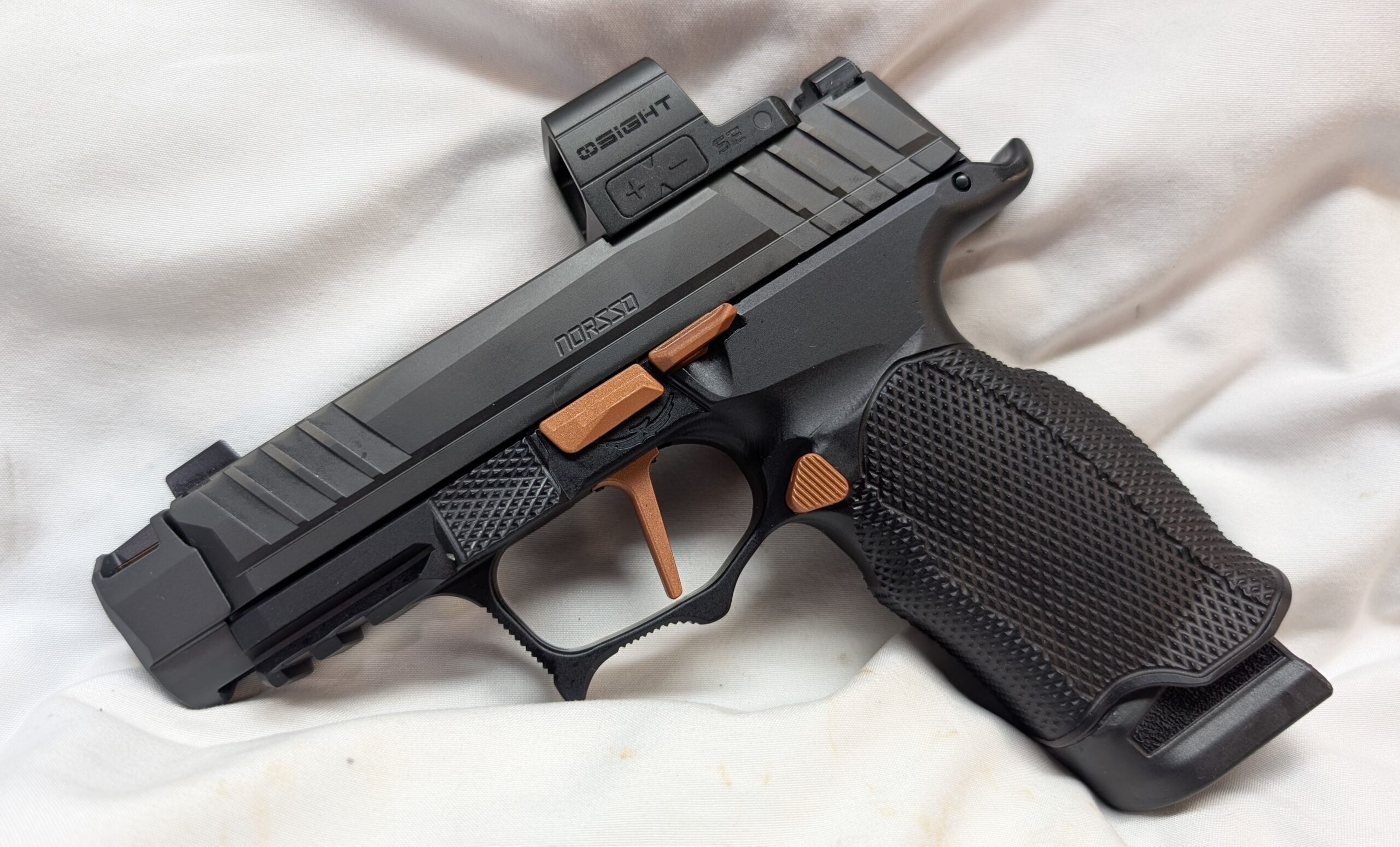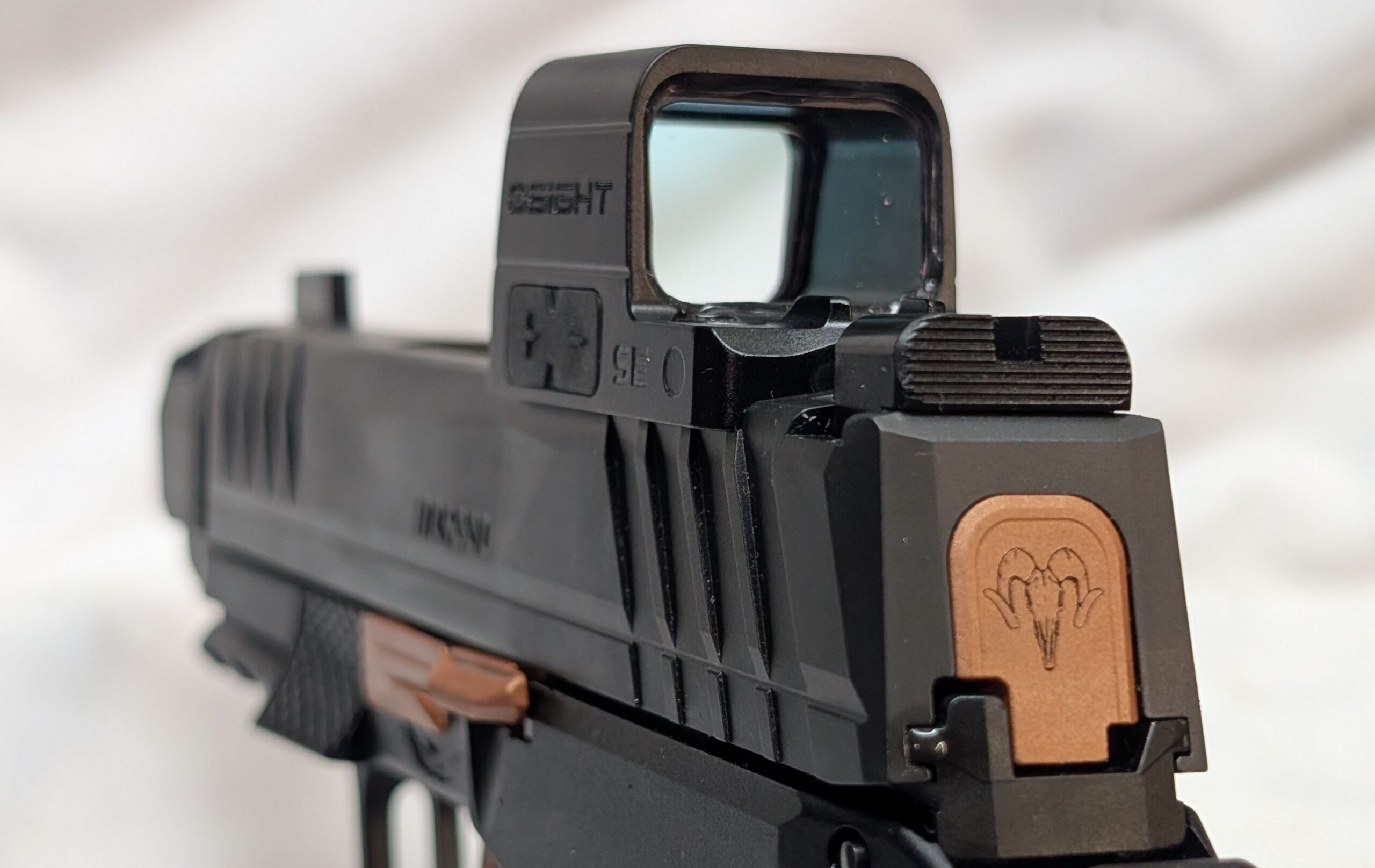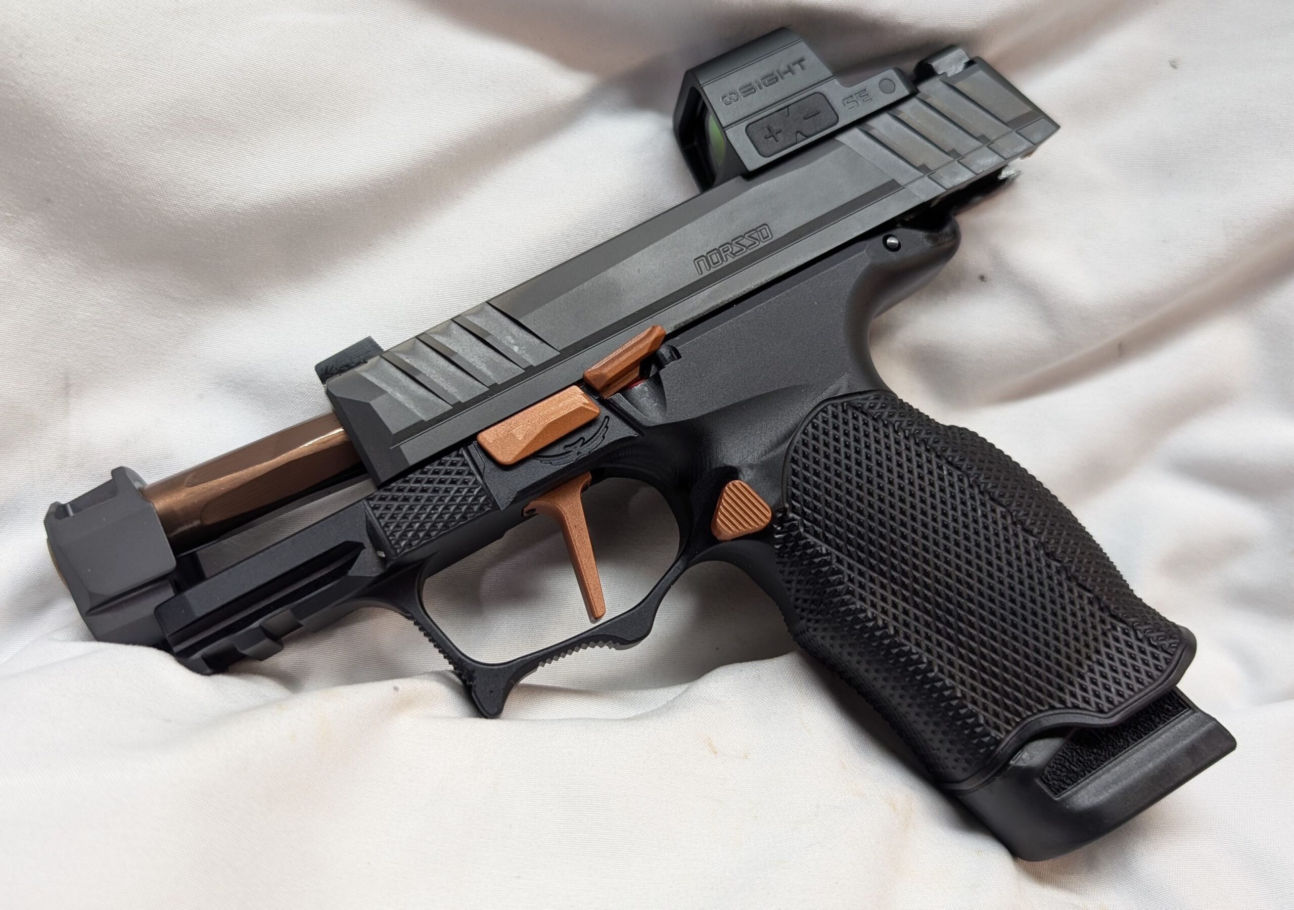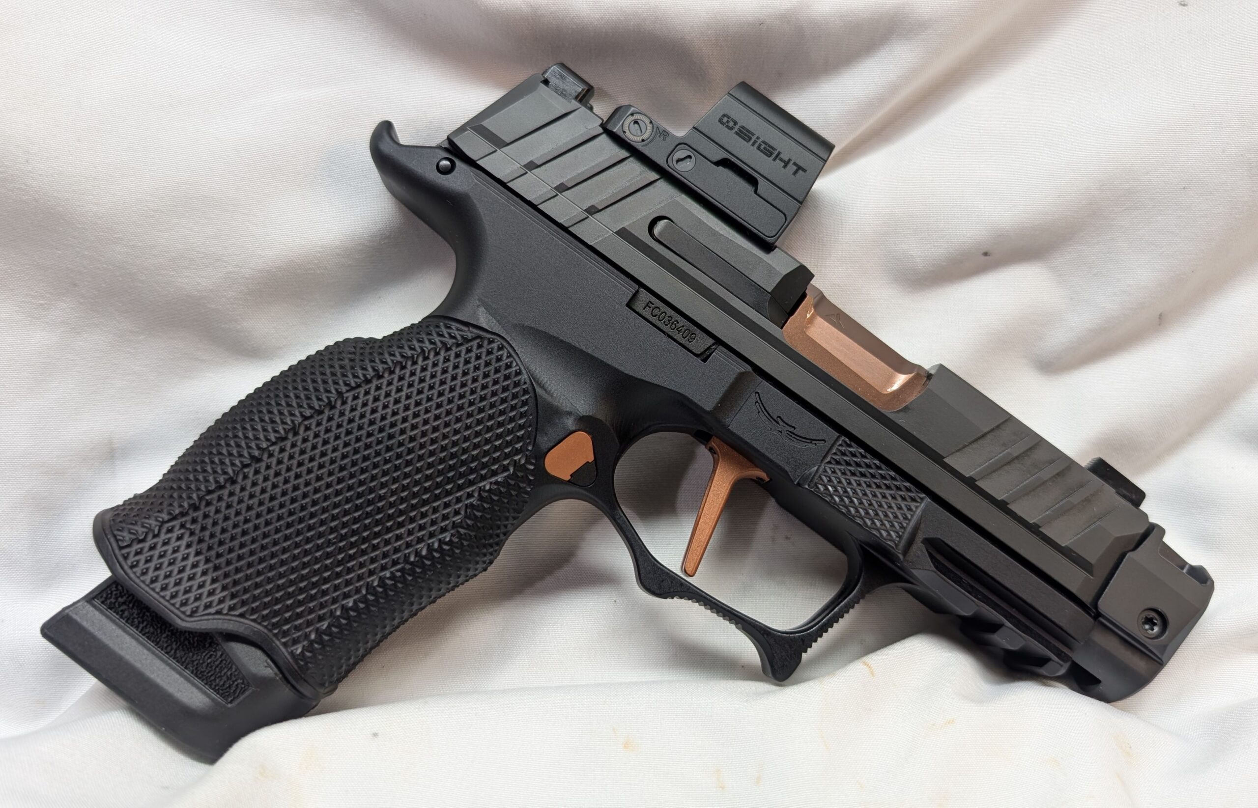 Featuring a 3.1 inch Radian Comped barrel, Norsso upper and Angry Bear sights, Icarus EVO Grip Module, RAMM Tactical Complete Copper Leverage Trigger Kit, Osight SE Enclosed Optic, and (1) 17 round extended and (1) 12 round flush magazines brings a new level of performance to your EDC.