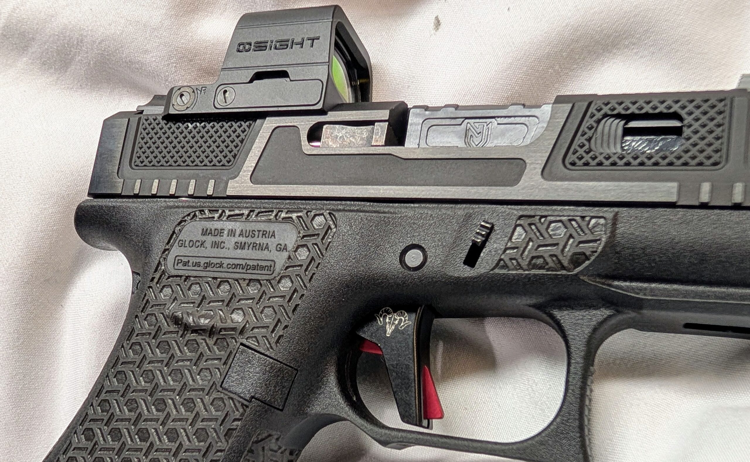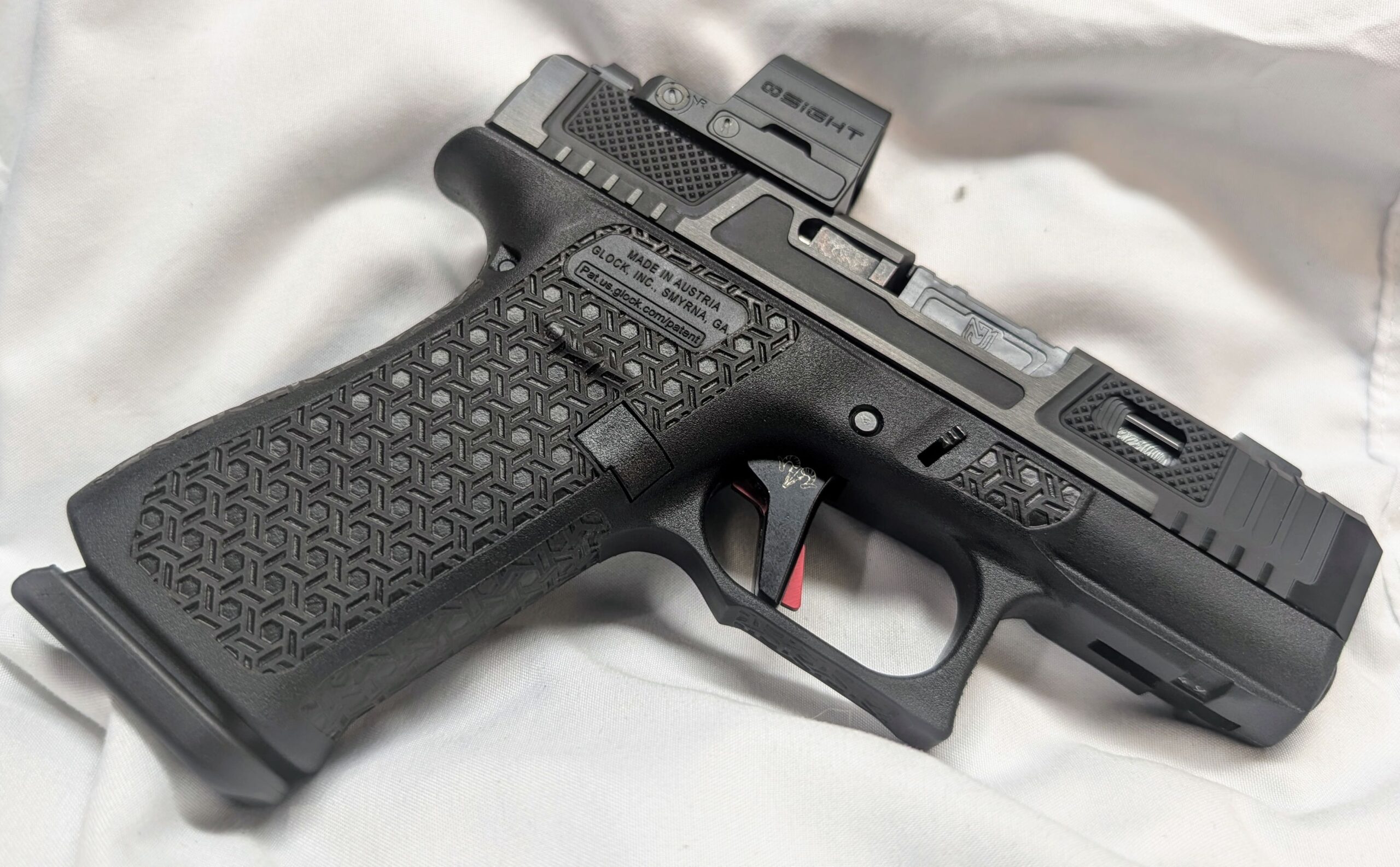 Featuring a Glock Gen5 G43X with JM Customs ported 3.4″ barrel and slide, RAMM Tactical leverage trigger with enhanced kit. One of the best Glock trigger pulls you’ll find…period! Comes with a OSight SE optic.